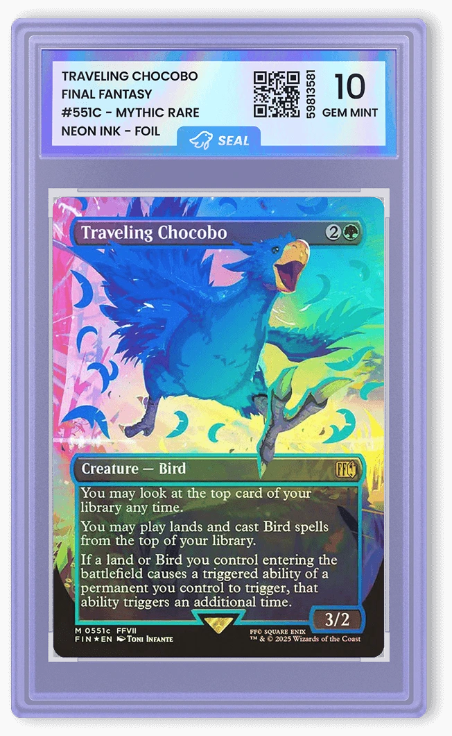 Proteja e aumente o valor da sua coleção com a certificação Seal, utilizando Inteligência Artificial (IA) somada de uma tecnologia de ponta para validar a sua autenticidade e um slab de qualidade internacional.